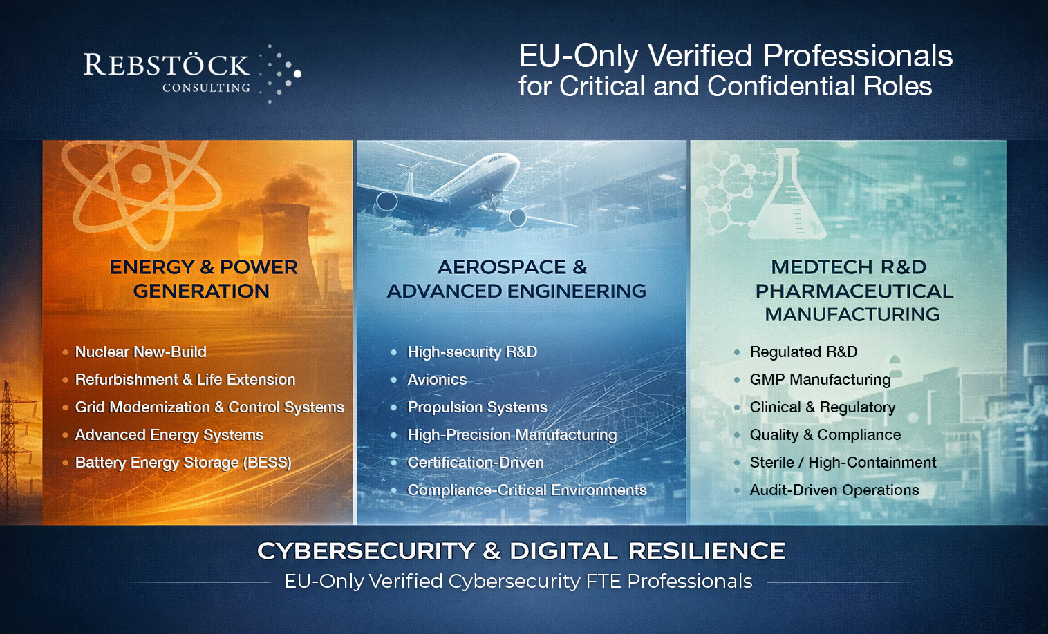 Rebstöck focuses on execution-critical EU FTE continuity — one-by-one — 12 to 36 months ahead of hiring pressure.